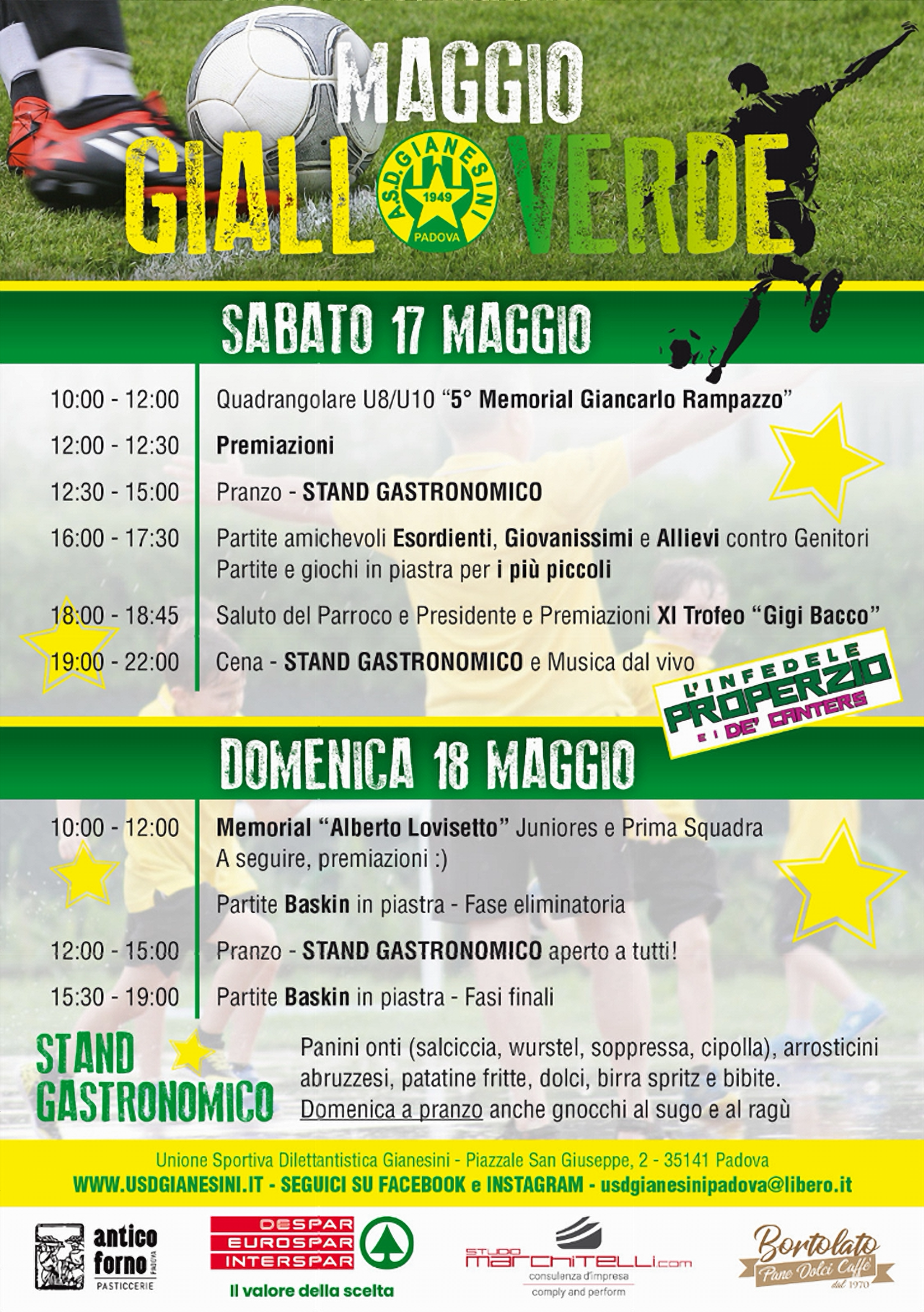 17-18 Maggio Giallo Verde Pubblicato giorno 10 maggio 2025 - Archivio 1 17-18 MAGGIO GIALLO VERDE ASD GIANESINI
